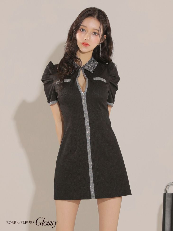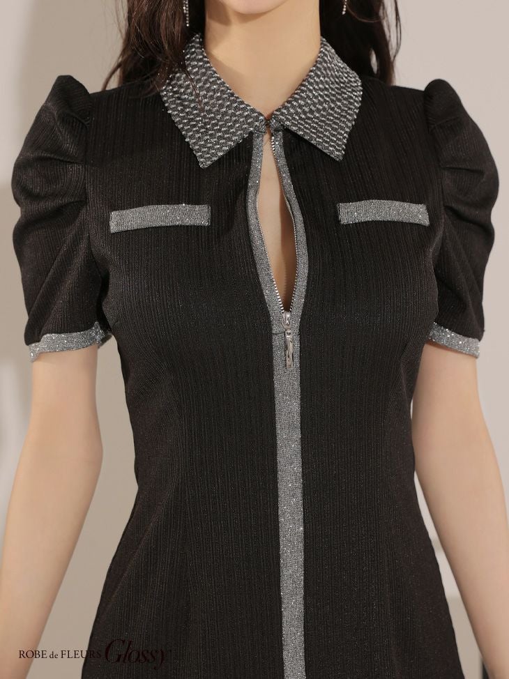 他の画像を見る XS~Lあり!大人っぽいデザイン☆ 【Glossy by ROBE de FLEURS/グロッシー】襟付き ラメニット パイピング ジップデザイン 半袖 セクシー オープンバスト タイトミニドレス (GL3349) ¥ 27,280 税込 詳細を見る お気に入りに登録する