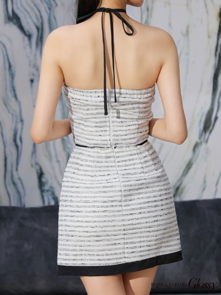 他の画像を見る XSあり!首元の紐は自由に結んでお好きに着こなせる☆ 【Glossy by ROBE de FLEURS/グロッシー】クロスホルターネック スプリングツイード ボーダーパイピング バストジップデザイン セットアップ タイトミニドレス(GL3708) ¥ 26,180 税込 詳細を見る お気に入りに登録する