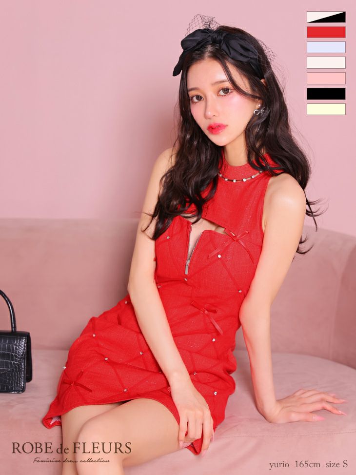 他の画像を見る XSあり!ストレッチで着心地満点☆ 【Glossy by ROBE de FLEURS/グロッシー】ホルターネック チェーン リボン ワンカラー ジップデザイン セットアップ セクシー オープンバスト タイトミニドレス(GL3332) ¥ 26,180 税込 詳細を見る お気に入りに登録する