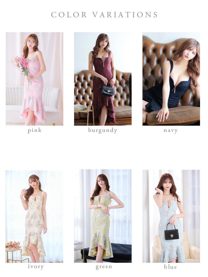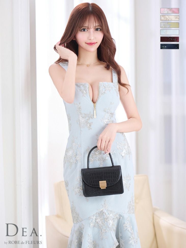 他の画像を見る Lあり!ロングテールが特徴☆ 【DEA.by ROBE de FLEURS/ディア】花柄 刺繍レース フロントジップ マーメイド ノースリーブ タイトひざ丈ドレス (DE2931) ¥ 32,780 税込 詳細を見る お気に入りに登録する