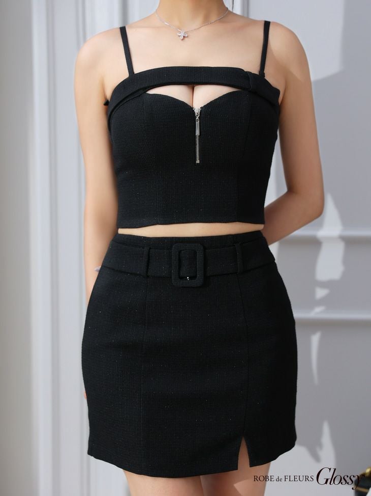 他の画像を見る XSあり!バストカットがsexy♡ SALE【Glossy by ROBE de FLEURS/グロッシー】バストカット ジップデザイン ベルトスカート ワンカラー キャミソール ラメ セットアップ タイトミニドレス(GL3254) SALE 定価 ¥ 27,280 → ¥ 21,824 税込 詳細を見る お気に入りに登録する