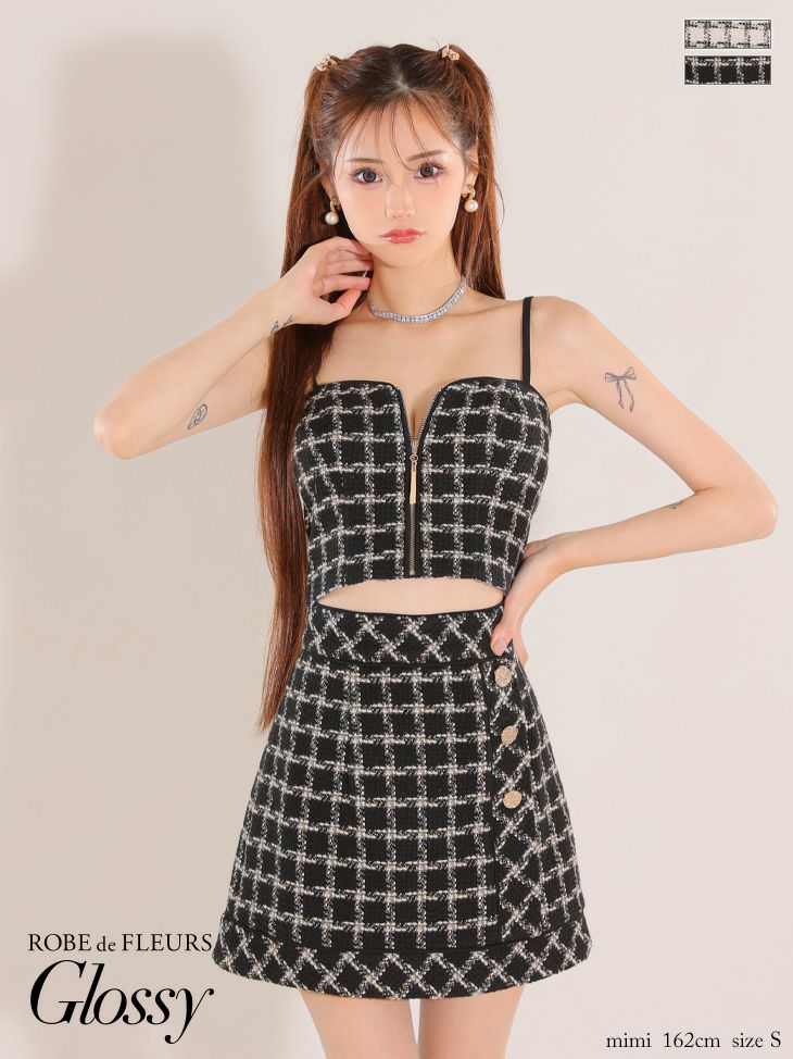 他の画像を見る XSあり!セクシーに着こなせる SALE【Glossy by ROBE de FLEURS/グロッシー】セクシー チェック ツイード フロントジップ セットアップ ノースリーブ タイトミニドレス (GL2734) SALE 定価 ¥ 28,380 → ¥ 21,285 税込 詳細を見る お気に入りに登録する