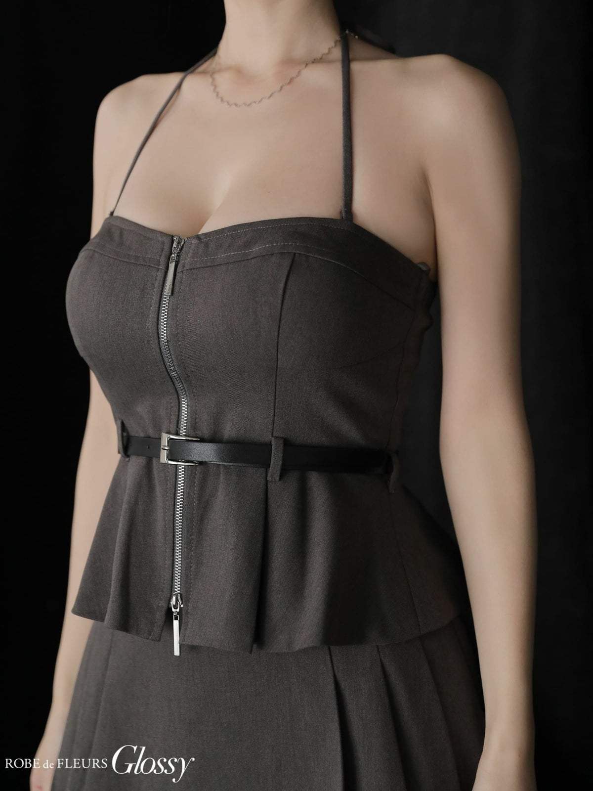 他の画像を見る XSあり!スタイルアップを叶える♡ 【Glossy by ROBE de FLEURS/グロッシー】ジップデザイン ウエストベルト ホルターネック ペプラム セットアップ プリーツスカート フレアミニドレス (GL3958) ¥ 29,480 税込 詳細を見る お気に入りに登録する