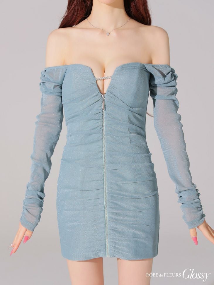 他の画像を見る XSあり!ストレッチで着心地抜群◎ 【Glossy by ROBE de FLEURS/グロッシー】ジップデザイン ラメチュール 長袖 オフショルダー タイトミニドレス (GL3926) ¥ 28,380 税込 詳細を見る お気に入りに登録する