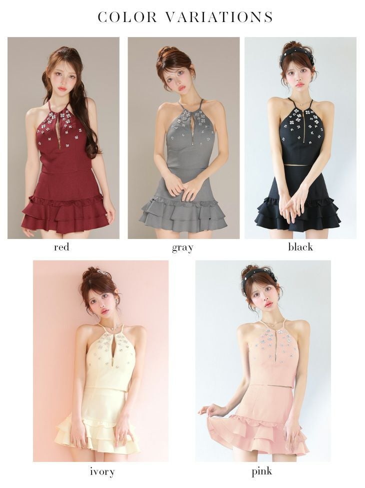 他の画像を見る XSあり!愛されセットアップ♡ 【ROBEdeFLEURS/ローブドフルール】ビジュー セットアップ ジップデザイン ホルターネック フレアミニドレス (fm3799) ¥ 29,480 税込 詳細を見る お気に入りに登録する