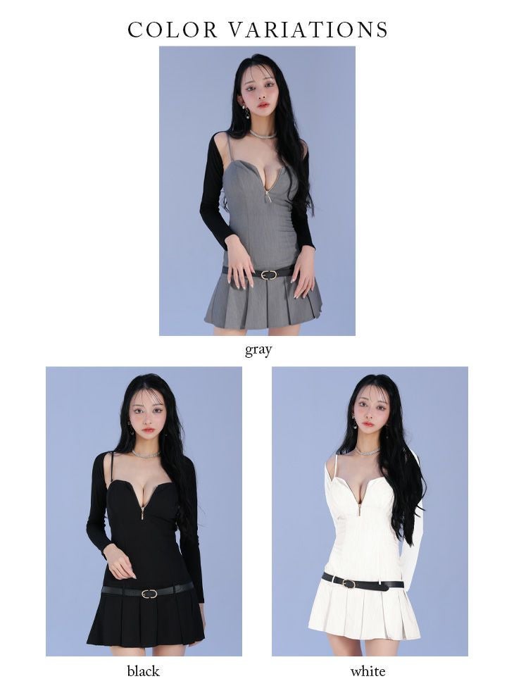 他の画像を見る XS~Lあり!COOLでおしゃれな一着♡ 【Glossy by ROBE de FLEURS/グロッシー】ジップデザイン ボレロ付き キャミソール 長袖 ベルトデザイン プリーツスカート シンプル フレアミニドレス (GL4208) ¥ 28,380 税込 詳細を見る お気に入りに登録する