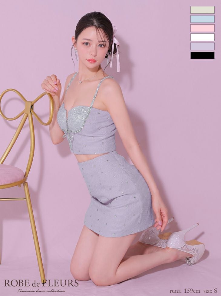 他の画像を見る XSあり!女の子らしいデザイン♪ 予約商品【2月下旬入荷予定】【ROBEdeFLEURS/ローブドフルール】ラメニット リボン 台形スカート セットアップ ガーリー オープンバスト ジップデザイン キャミソール スパンコール 刺繍レース ビジュー フレアミニドレス(fm3415) 予約 ¥ 28,380 税込 詳細を見る お気に入りに登録する