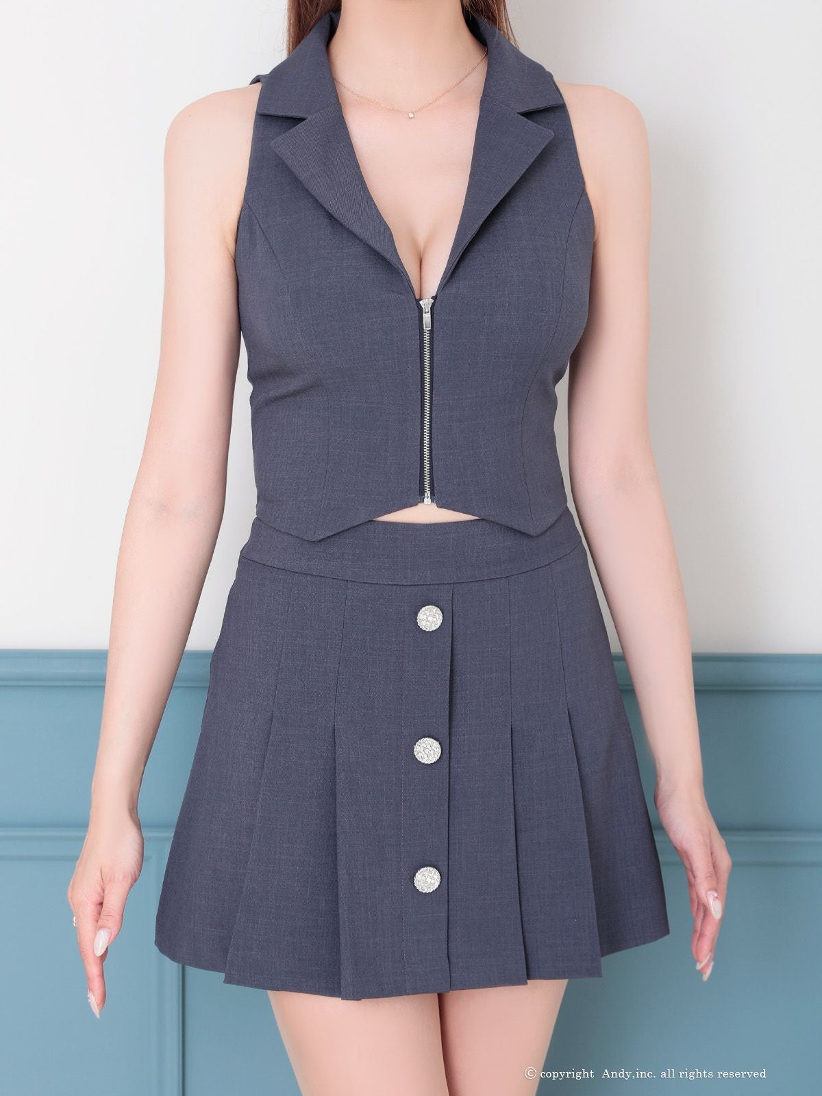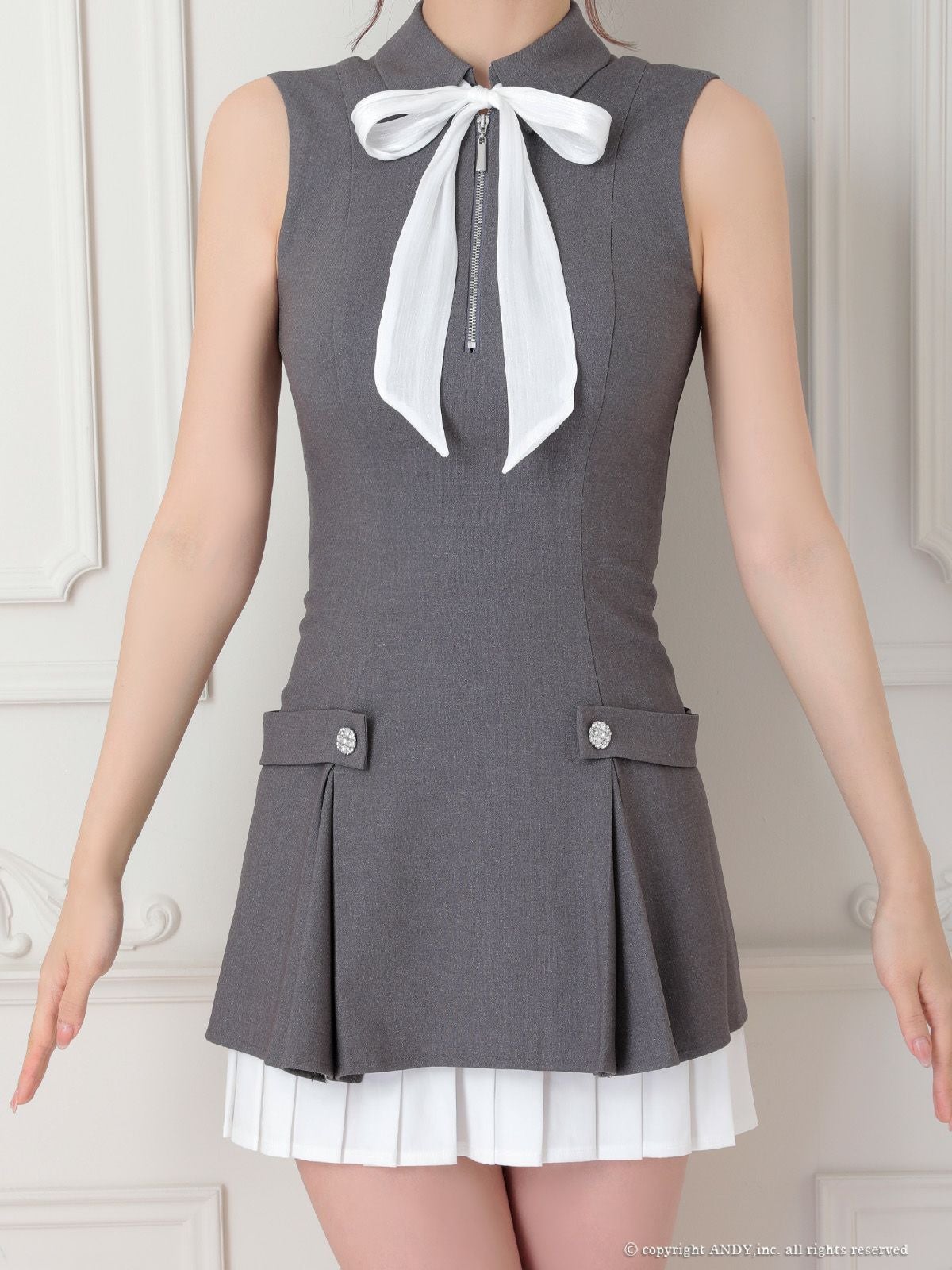 他の画像を見る XSあり!タイトなトップス×プリーツスカートでスタイルUP効果抜群!!!! 【Andy/アンディ】飾りボタン プリーツ 襟付き ジップデザイン セットアップ ノースリーブ フレアミニドレス(anon2947) ¥ 29,700 税込 詳細を見る お気に入りに登録する