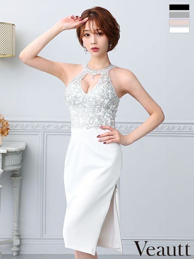 他の画像を見る XSあり!高級感抜群♪ 【Veautt/ヴュート】ジップデザイン 刺繍 ビジュー セクシー オープンバスト ホルターネック 膝丈ドレス (VT032412) ¥ 30,580 税込 詳細を見る お気に入りに登録する