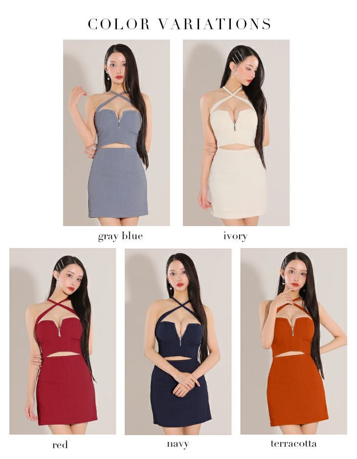 他の画像を見る XSあり!セクシーすぎる大胆な肌見せ☆ 【Glossy by ROBE de FLEURS/グロッシー】セクシー ジップデザイン ワッフル クロス ホルターネック セットアップ タイトミニドレス (GL3568) ¥ 28,380 税込 詳細を見る お気に入りに登録する