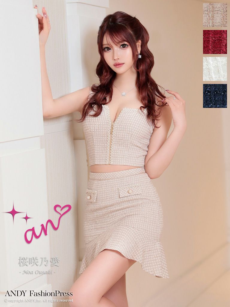 他の画像を見る XSあり!フロントのジップで谷間の露出を調節できる♡ 【an/アン】ツイード ジップデザイン 裾フリル セットアップ ノースリーブ 飾りポケット フレアミニドレス(aoc3754) ¥ 28,600 税込 詳細を見る お気に入りに登録する