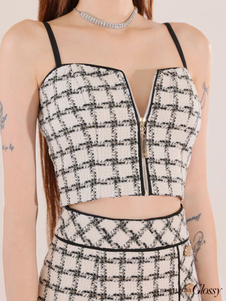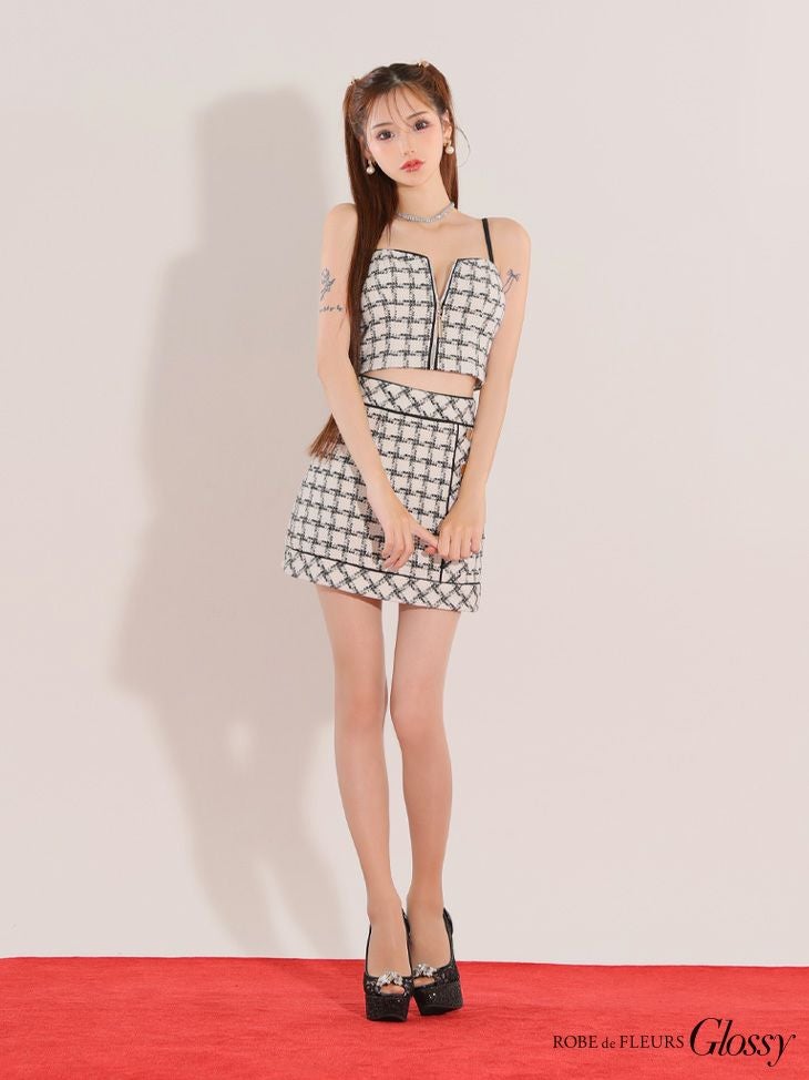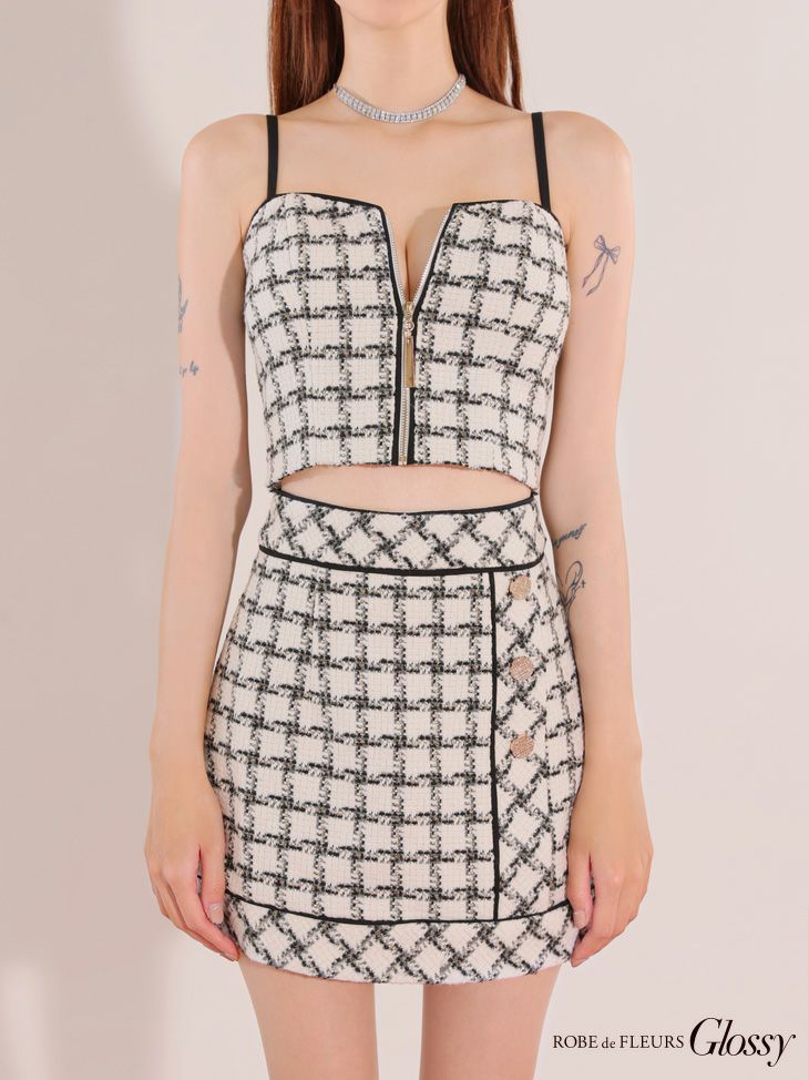 他の画像を見る XSあり!ゴールドボタンがアクセント☆ 【Glossy by ROBE de FLEURS/グロッシー】チェック柄 ツイード パイピングデザイン ゴールドボタン ジップデザイン オープンバスト キャミソール セットアップ セクシー タイトミニドレス (GL3569) ¥ 29,480 税込 詳細を見る お気に入りに登録する