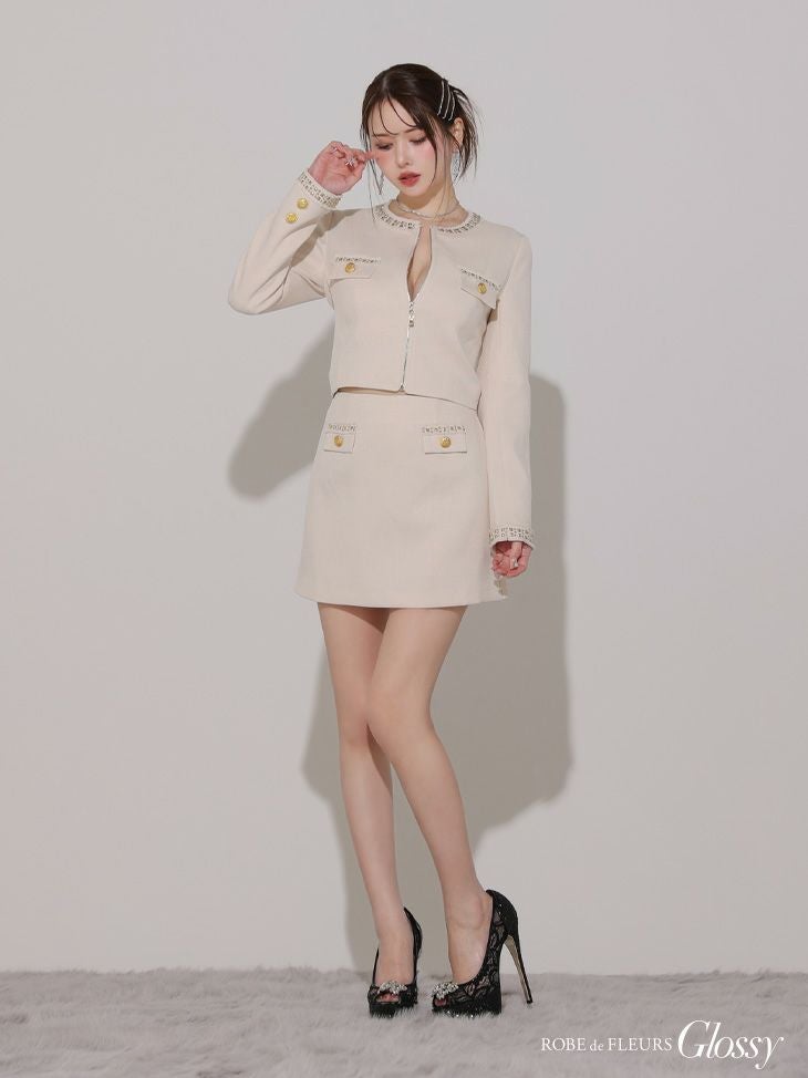 他の画像を見る Lあり!バストジップでしっかり肌見せ☆ 【Glossy by ROBE de FLEURS/グロッシー】セクシー オープンバスト ジップデザイン 長袖 ツイード ジャケット セットアップ フレアミニドレス (GL3356) ¥ 32,780 税込 詳細を見る お気に入りに登録する
